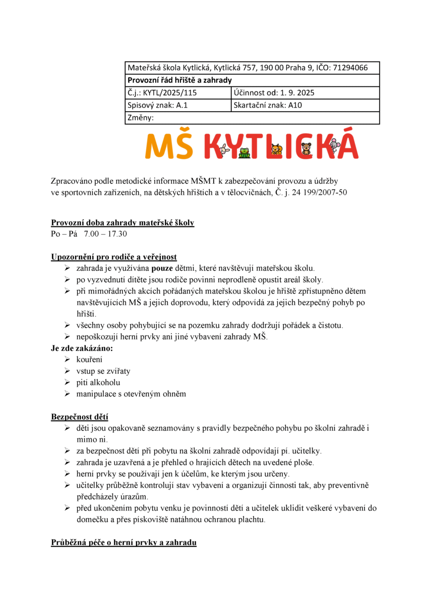 Dokumenty školy